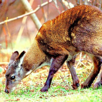– Male musk deer grow long, curved fangs which are used to attract females and fight with fellow males during the breeding season.